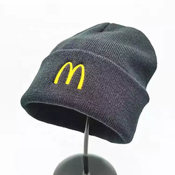 Gorro de malha preto com logotipo bordado, chapéu de inverno quente e desleixado barato, personalizado OEM de alta qualidade com seu próprio design